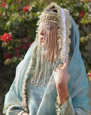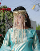 Asghari Sehra - A Retro style Sehra embellished with zardosi embroidery, tooti tamba gota, pearls with sparkly rhinestones and pearl fringe.