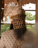 Akbari Sehra - A Retro style Sehra embellished with zardosi embroidery, tooti tamba gota, pearls with sparkly rhinestones and pearl fringe.