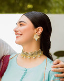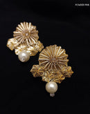 Golden Gota Studs earrings Handcrafted with Tamba Gota embellished with pearls and colorful beads