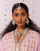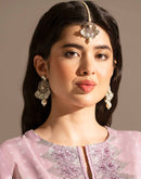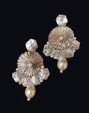 Asharfi Handmade earrings using Tamba Gota embellished with pearls.