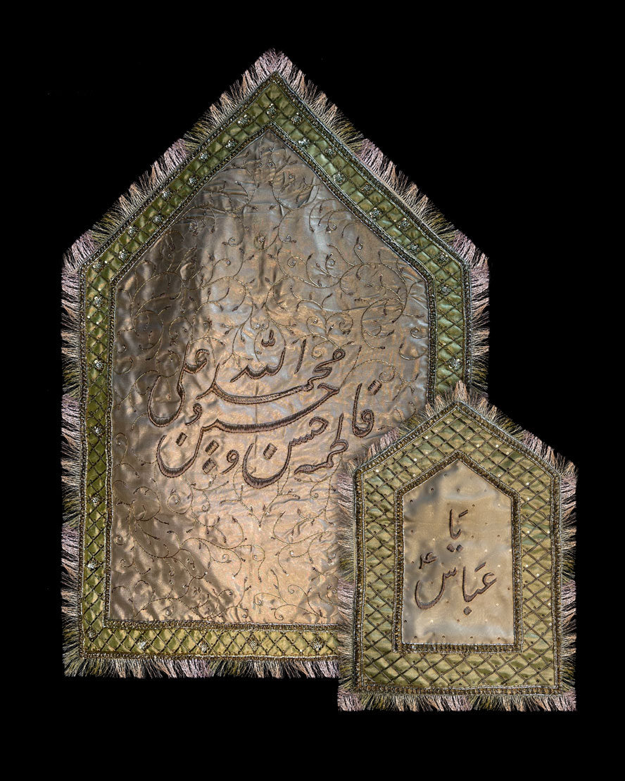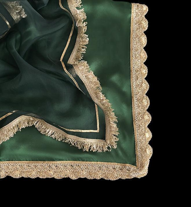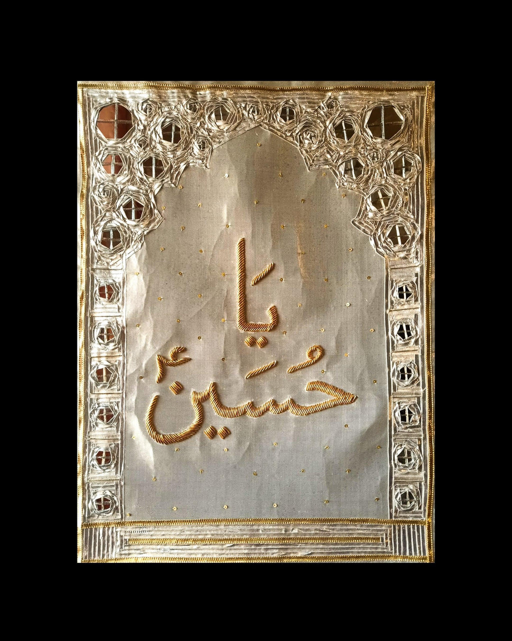 Handmade Alam Patka with dapka embroidered text embellished intricately with mirrors, golden Silver gota and sequin chan.