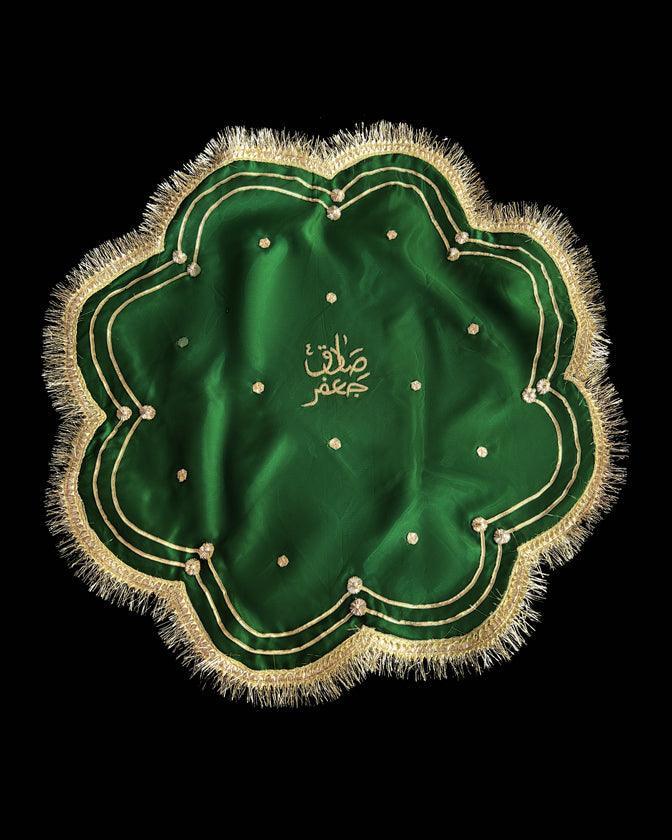 Triple layered Thaal cover made in organza and silk fabric embellished with Gota and laces with intricate hand embroidered text in the center.