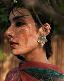 Ganga Jamna Stud Earrings Handcrafted using Silver and Golden tamba gota embellished with pearls and colored beads.