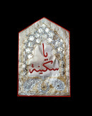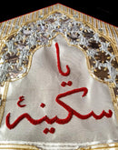 Handmade Alam Patka with dapka embroidered text embellished with plastic mirror sequins, golden and Silver gota.
