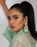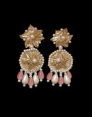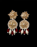 Zaib - A Pair of Earrings Handmade with tamba Gota embellished with pearls and colored drop beads.