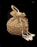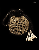 Silk Potli Bag overlaid with Intricate hand crochet mesh embellished with Handmade Pearl Tassel string and a Braided wristlet. A Bag Size: 8x11 inches Handling Options: Tassel Strings & Braided Wristlet Perfect...