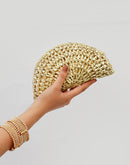 Half moon Gota Crochet Classic Style Clutch Bag overlaid With Hand Crochet Gota mesh with a zip opening. A Bag   Model is holding regular size clutch Perfect combo with Eastern/Western...