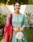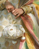 Silk Phool Potli Bag designed with Gota, fringes and handmade latkans.