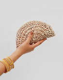Half moon Gota Crochet Classic Style Clutch Bag overlaid With Hand Crochet Gota mesh with a zip opening. A Bag   Model is holding regular size clutch Perfect combo with Eastern/Western...