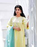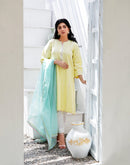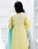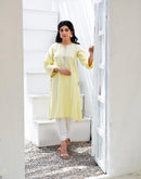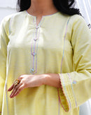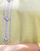 Daffodils - A Textured Cotton Slub shirt hand embroidered with holographic mini hearts and embellished with gota ribbon and laces.