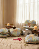 Dilbar Gota Silk Cushion - Heart shaped cushion embellished with Gota and fringe all around.
