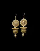 Golden Ball Dangle Earrings Handmade with Tamba Gota embellished with pearls. A pair of Earrings Color: Golden Closure: Ear wire