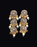 Ganga Jamna Drop Earrings Handmade using Silver and Golden tamba gota embellished with pearls and colored beads.