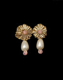 Handmade Gota studs embellished with beads. A pair of Earrings Color: Golden  Closure: Push Back Bead Color options available
