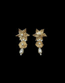 Handmade Gota earrings embellished with pearls. A pair of Earrings Color: Golden Closure: Push back