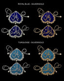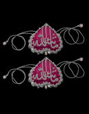 Handmade Gota Imam Zamin detailed intricately with kora, Gota phool and pearls on Silk Base. A pair Size: 4x4.5 inches Closure: String Tie Product color may slightly vary due to photographic lighting sources...
