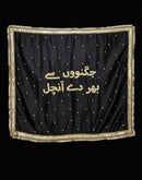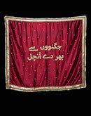 Hand-embroidered backdrop made in silk with various embroidery techniques, bordered with gota and laces.