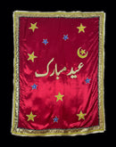 Hand-embroidered backdrop made in silk with various embroidery techniques, bordered with gota and laces.