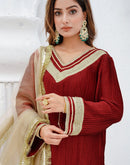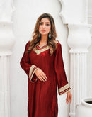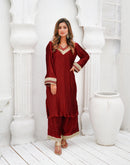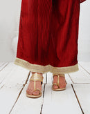Pleated Silk Tunic Set embellished with Laces paired with contrasting Golden Zari Net Dupatta.