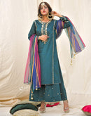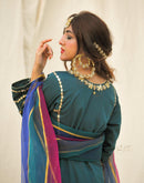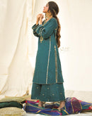 Morzaadi - A formal outfit includes a deep teal tunic paired up with dhaka payjama embroidered with tamba gota phool patti with pearls, styled with dupatta with gota handmade tassels....