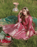 Shabnam - A Classic Pink tissue Gharara set includes flared classic gharara with knee length shirt styled with contrasting dupatta embellished with Gota laces and handmade latkans.
