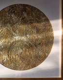 Hand Embroidered Gota chaotic spirals glass framed in metallic golden border. Size: 22x22 inches Glass Framed-half inch golden border To Hang: Saw tooth hook For color/size/frame customization please contact zar.thebrand@gmail.com or DM us @zar_thegotaart...