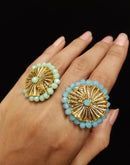 Handmade Ring using Gota embellished with colorful beads.