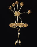 Umrao Panjangala - Handmade Bracelet with five attached Rings made using Gota and embellished with pearls. A Bracelet with 5 Ring Color: Golden Closure: Slide Clasp Ring Size: Adjustable