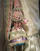 Umrao Panjangala - Handmade Bracelet with five attached Rings made using Gota and embellished with pearls.