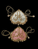 Handmade Gota Imam Zamin detailed intricately with kora, Gota phool and pearls on Silk Base. A pair - Pink/White Size: 4x4.5 inches Closure: String Tie Product color may slightly vary due to photographic...