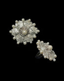 Handmade Ring design with Gota and pearls. A Ring Color: Silver Size: Adjustable