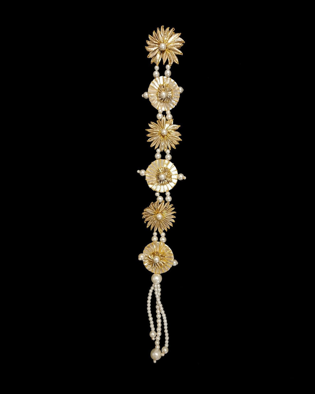 Sohan Golden Teeka - Handmade with Gota and embellished with pearl beads.