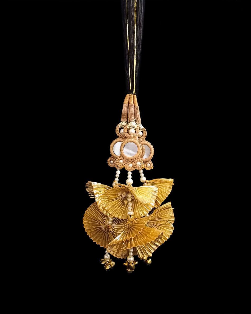 Sheesha Gota Paranda - Handmade hair extension designed with Gota embellished with pearls and Ghungroo.