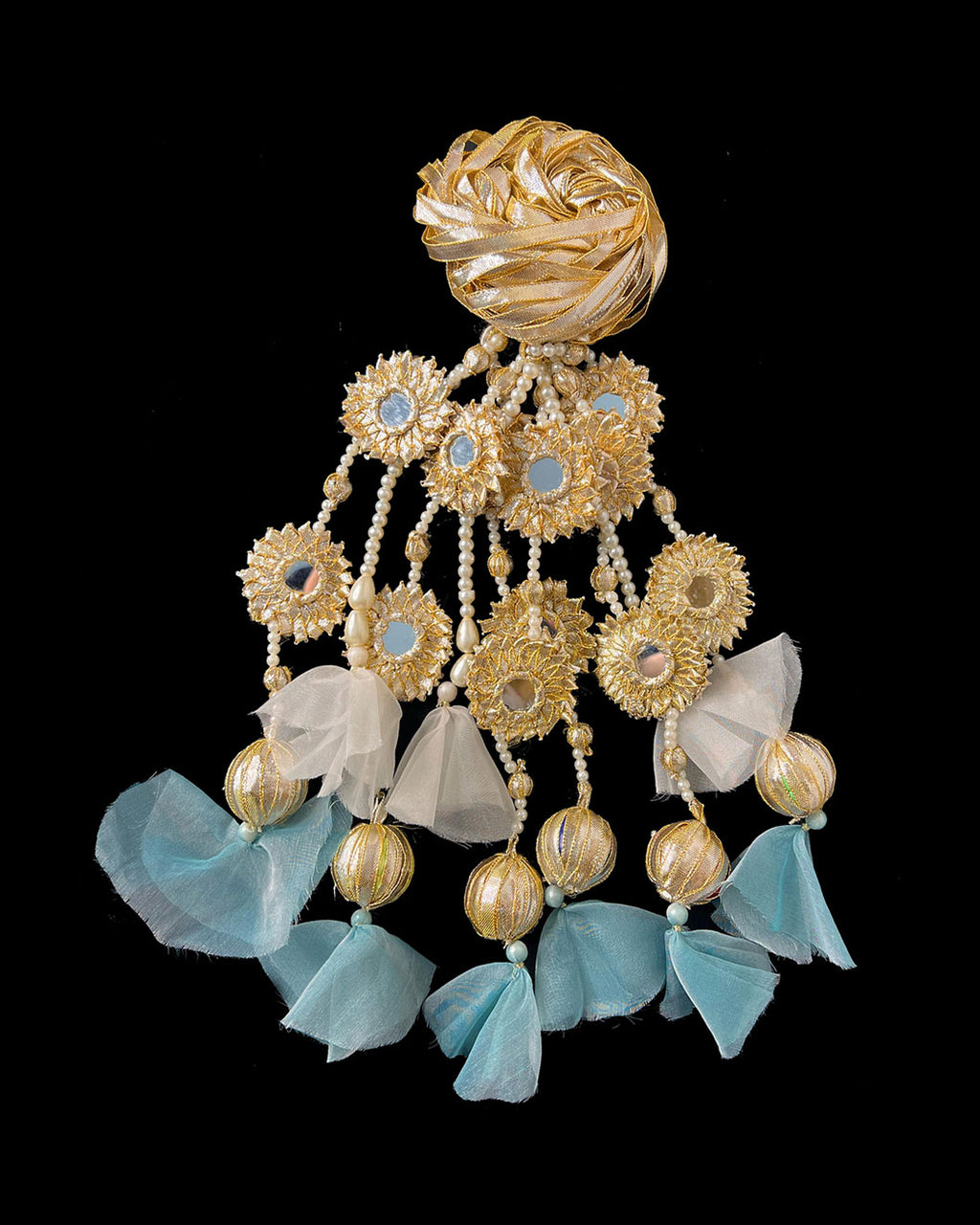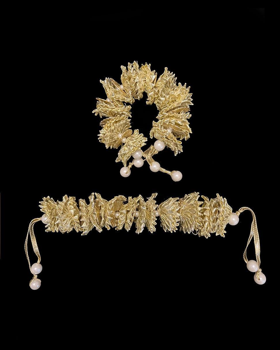 Handmade Jada Braid pin Jewelry design with Gota phool embellished with pearls.