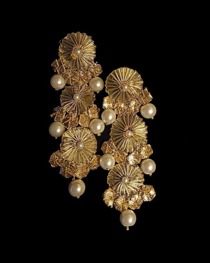 Handmade Gota earrings embellished with pearls.