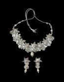 Gul Gota Set - Handmade Jewelry Set designed with Gota and embellished with pearls. Includes: Necklace, Earrings Color: Silver
