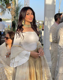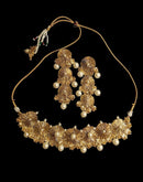 Nawabi Gota Set - Handmade Jewelry Set designed with Gota and embellished with pearls. Includes: Necklace, Earrings Color: Golden