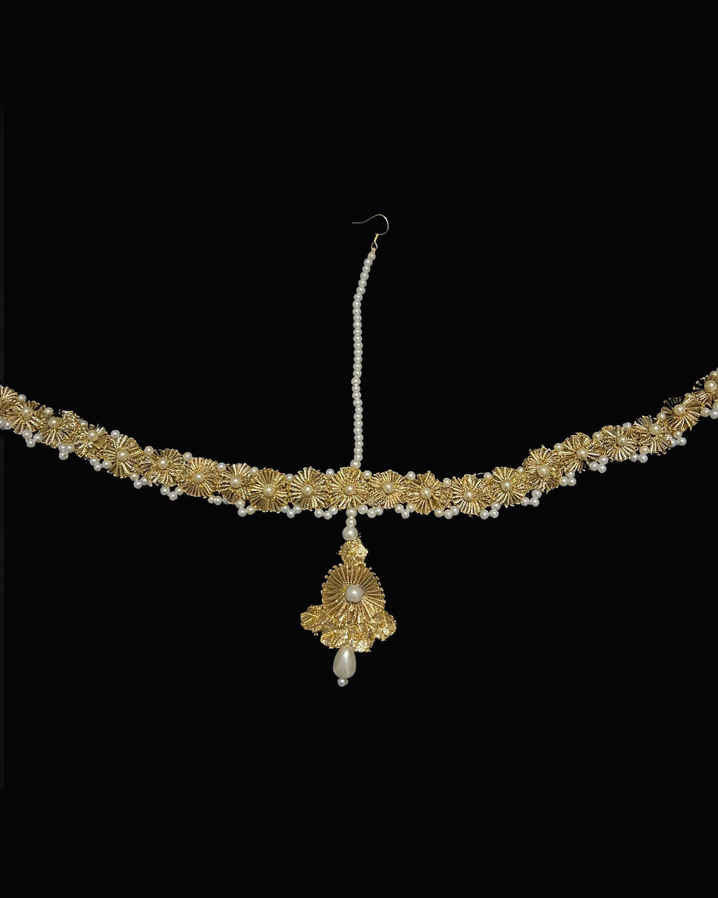 Kamli Gota Matha Patti- Handmade Headband Jewelry design with Gota embellished with pearls.