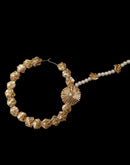 Handmade Nath designed with Tamba Gota and embellished with pearls.  A Pierced Nath Size: 2.5 inches diameter Color: Golden