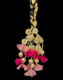 Geet Gota Paranda - Handmade hair extension designed in Gota embellished with pearls, mirrors and fabric latkans.
