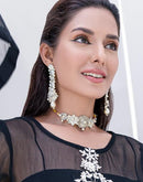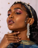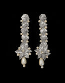 Bandki Silver Drop Earrings Handcrafted with Tamba Gota embellished with drop pearls.