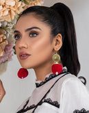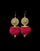 Handmade Gota studs embellished with pearls and pink pompoms.