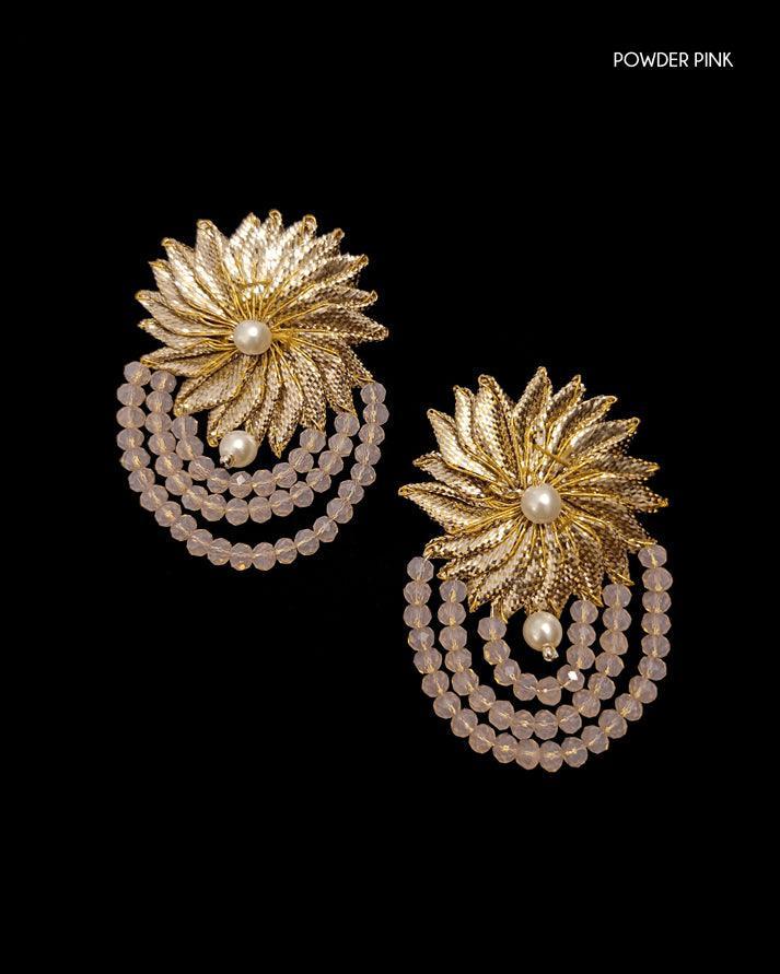 Gota Champa Earrings Handcrafted with tamba gota and embellished with colorful beads and pearls.
