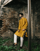 Upgrade your style with Zar's textured neck kurta made in Mustard cottonsilk paired up with white payjama pants. Color: Mustard Swipe photos for Size Guide Product color may slightly vary due to...