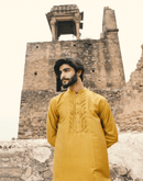 Upgrade your style with Zar's textured neck kurta made in Mustard cottonsilk