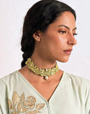 Golden Gul Necklace Handmade Tamba Gota and embellished with pearls.