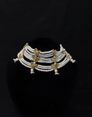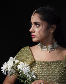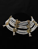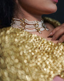 Mehr - A handmade choker exudes a vintage charm with its layered pearls and gold gota heart motifs, perfect for timeless, graceful looks.