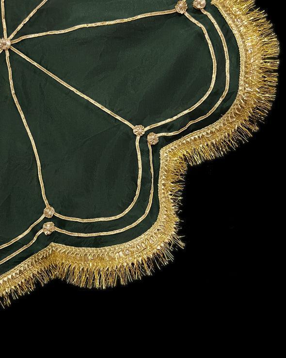 Round Thaal cover made in Organza fabric embellished with Gota and laces.