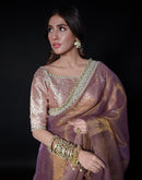 2 PIECE EMBROIDERED MESSURI SAREE - Pink