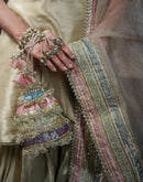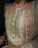 - 3 PIECE PATCHWORK TISSUE GHARARA - Golden